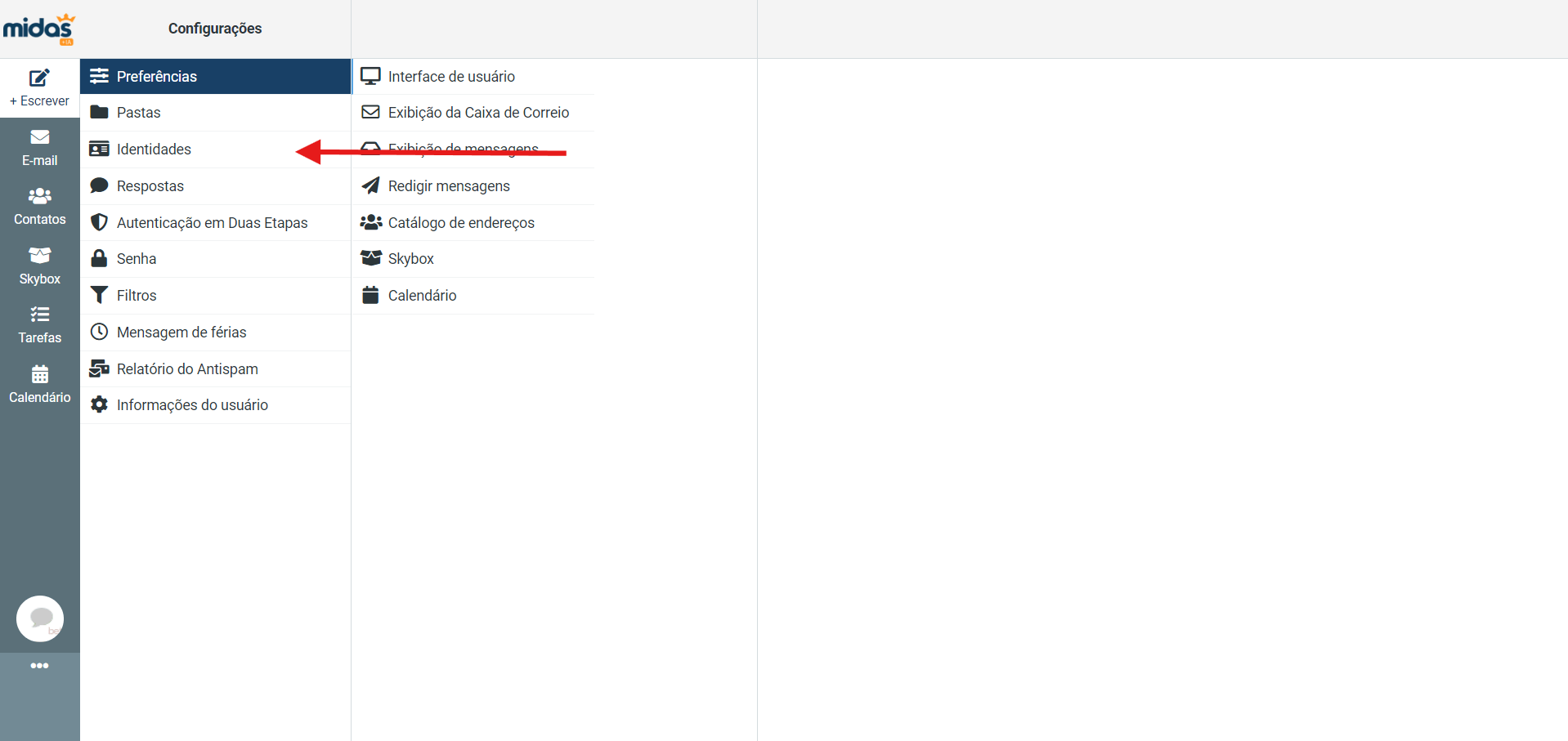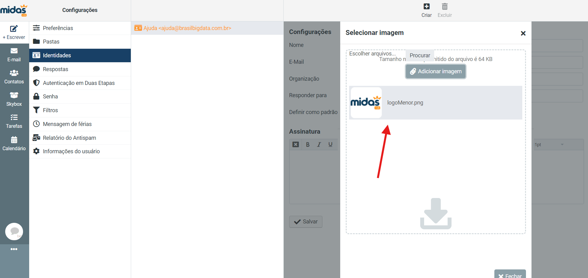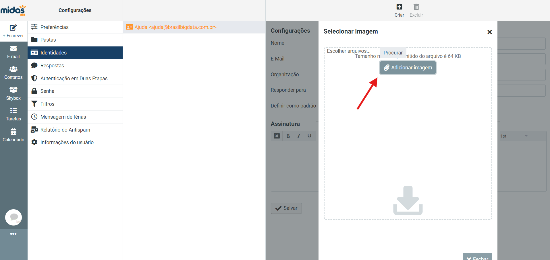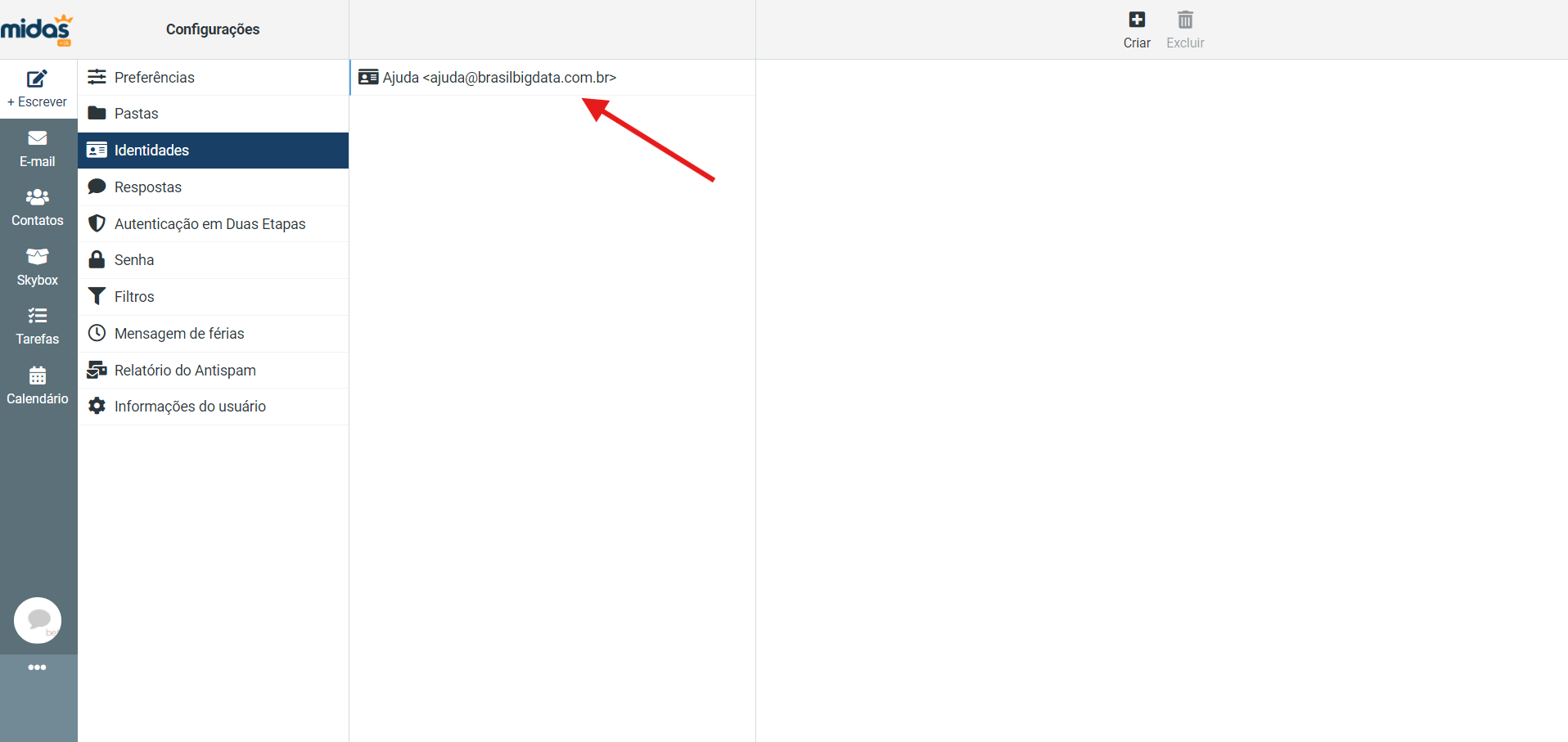 3 – Na tela de Identidades, selecione o e-mail o qual deseja adicionar a assinatura.